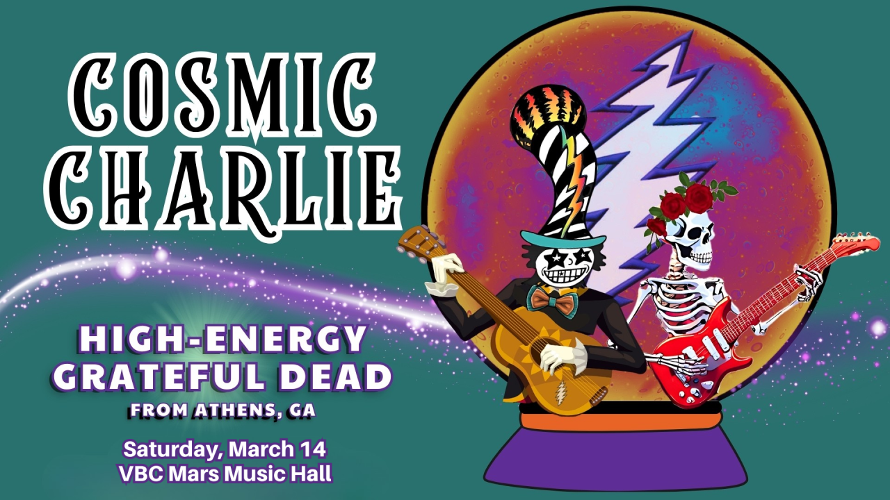 Due to inclement weather conditions, the upcoming Cosmic Charlie performance originally scheduled for January 24 at the VBC Mars Music Hall has been rescheduled to Saturday, March 15, 2026 at 8:00 p.m. The decision was made with the safety of fans, artists, crew, and venue staff as the top priority.