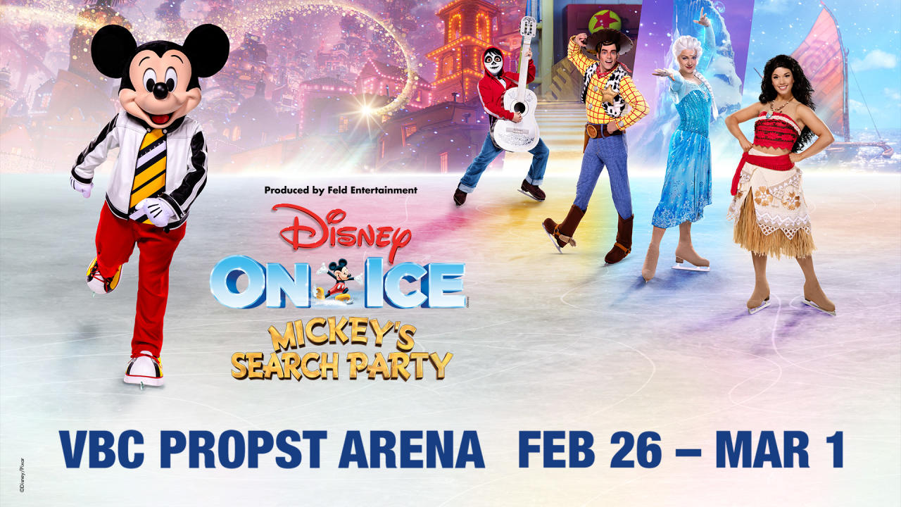 Join Mickey Mouse and his friends at Disney On Ice presents Mickey's Search Party, an adventure filled with world-class, high-flying acrobatics and unexpected stunts! Look for clues in the search for Tinker Bell through immersive, fantastic worlds. Explore the colorful spirit realm of Coco, sail away with Moana as she bravely saves her island, see Belle in the sky as the enchanted chandelier comes to life, and sing-along with Elsa in the icy world of Frozen. Make memories during Aladdin, Toy Story and The Little Mermaid as the search party becomes an all-out celebration!