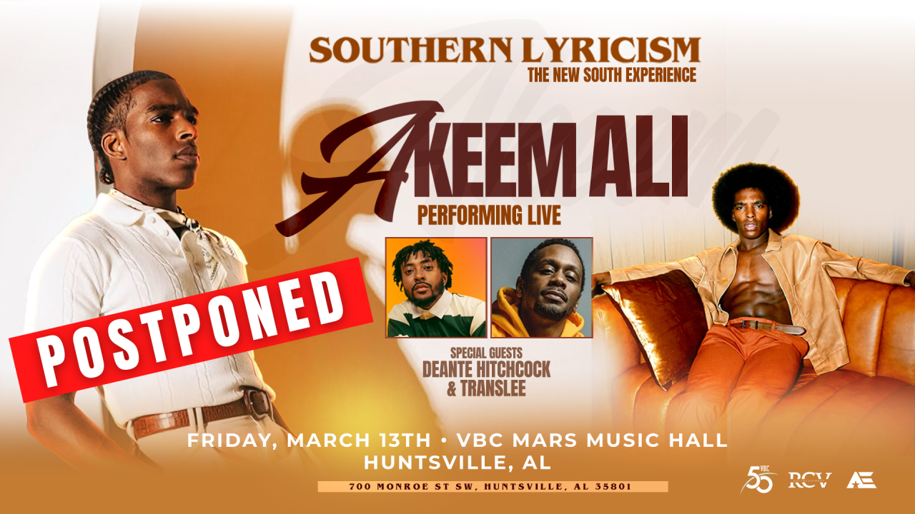 Southern Lyricism: The New South Experience featuring Akeen Ali will be rescheduled to a later date.