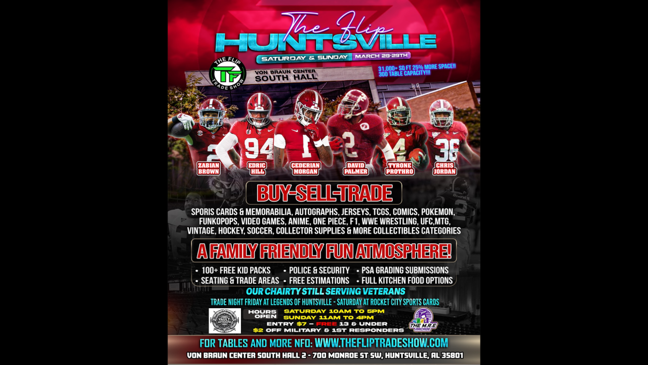 THE FLIP is a trade show and marketplace where you can see 100+ vendors! You can BUY, SELL, or TRADE sports cards, non-sports & trading card games (TCGS), Pokemon, MTG, comics, videos games, Funko Pops, anime, currency & coins, sports & wrestling memorabilia, autographs, jerseys, Nascar, F1, UFC, wrestling, collector supplies, and more collectables.